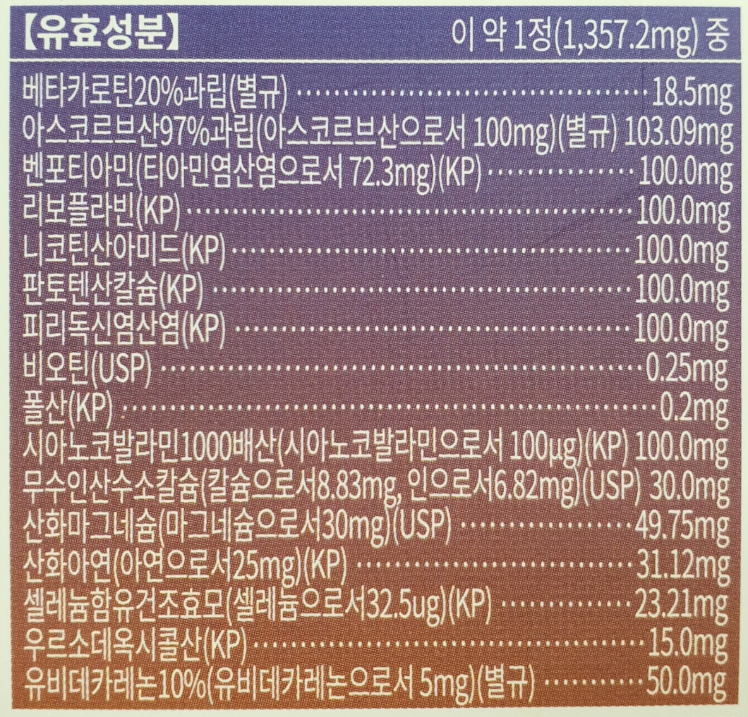 육체 피로에 유효한 성분인 B1, B2, B6 등이 들어있습니다. 신경통, 근육통, 관절통, 어깨 결림 등에 좋다는데요. 필자는 아직 그런 고통은 느껴본 적이 없어서 효과가 있는지는 확인하지 못했습니다. 다만 눈의 건조함은 조금 덜한 느낌이네요. 비타민 이외에 마그네슘과 아연도 포함하고 있어서 꽤 준수한 효과를 얻을 수 있었습니다.